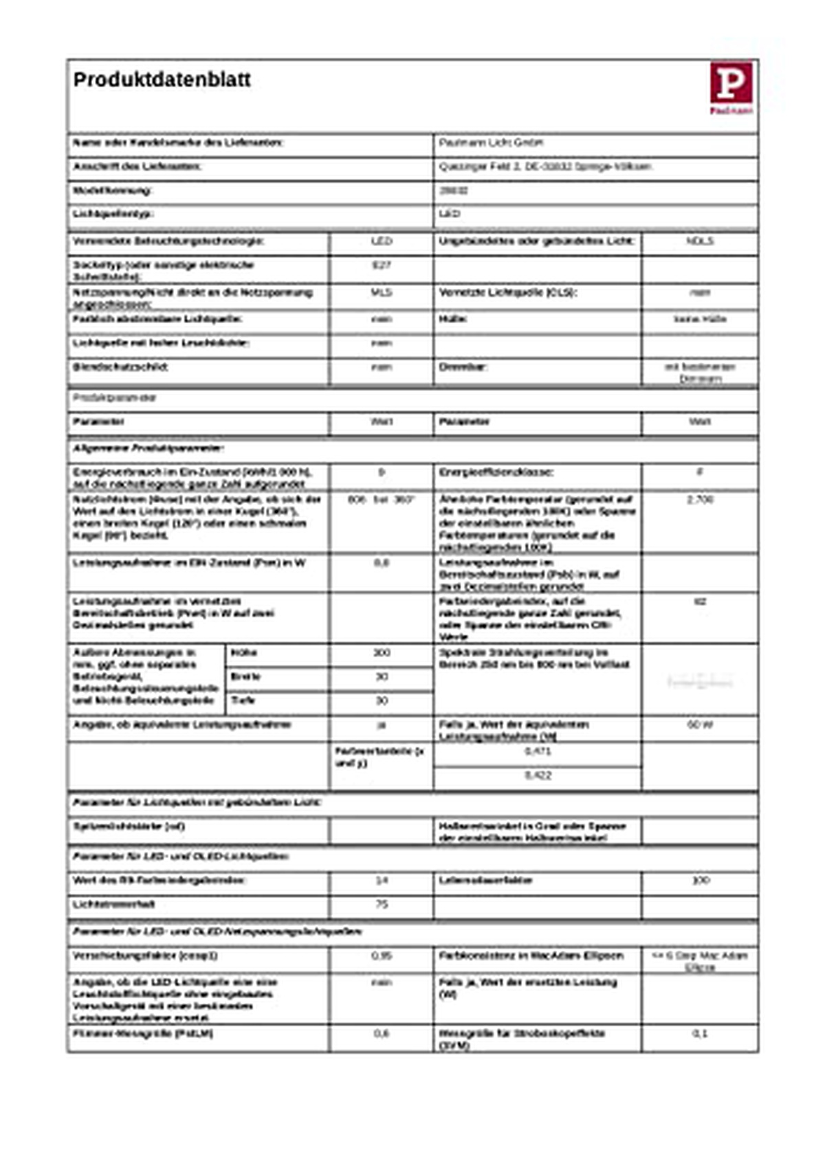 Značka: Paulmann Číslo modelu: 28832 Typ žárovky: LED Typ základny: E27 Spotřeba energie: 8,8W Jas: 806 lumenů