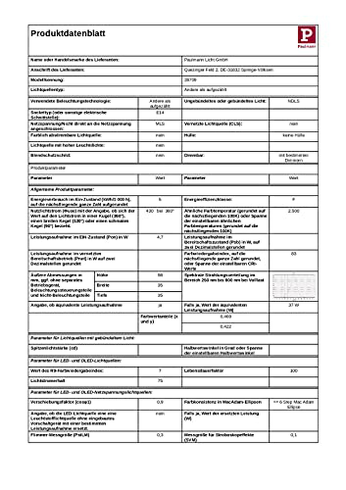 Paulmann 28709 LED E14 4.7W 430lm