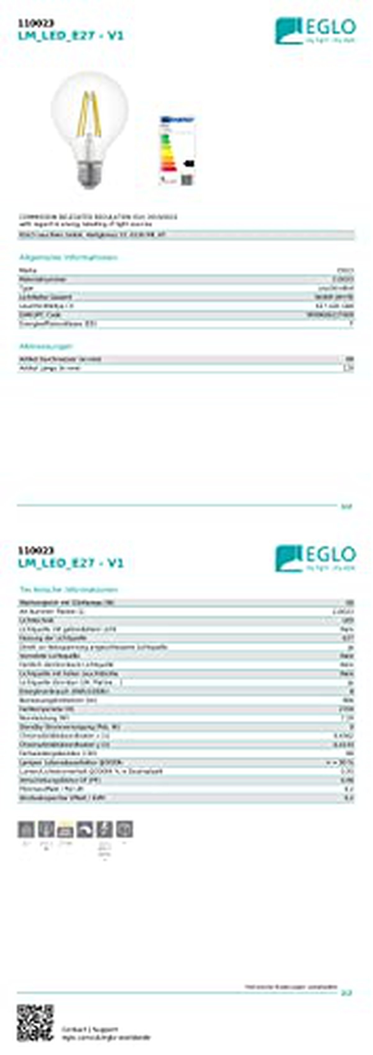 EGLO 110023 LED E27 7.5W 806lm