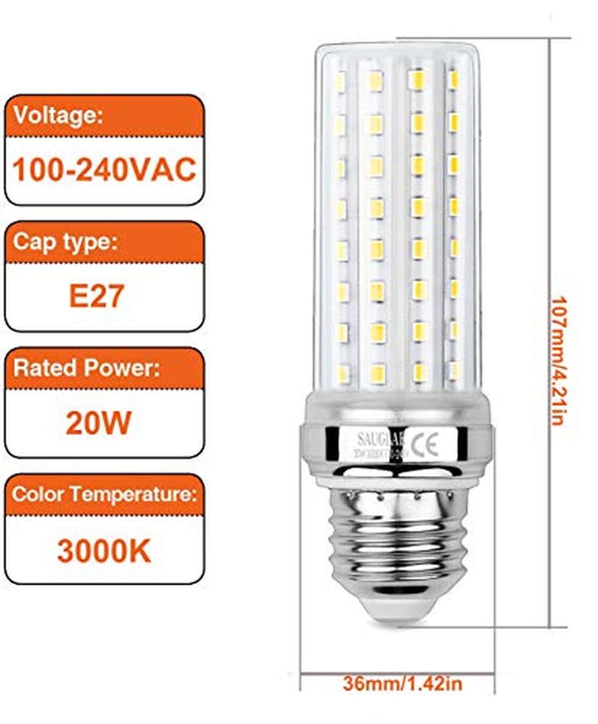 SAUGLAE S-E27Corn-20W-WW-3P-053 LED E27 20W 2300lm