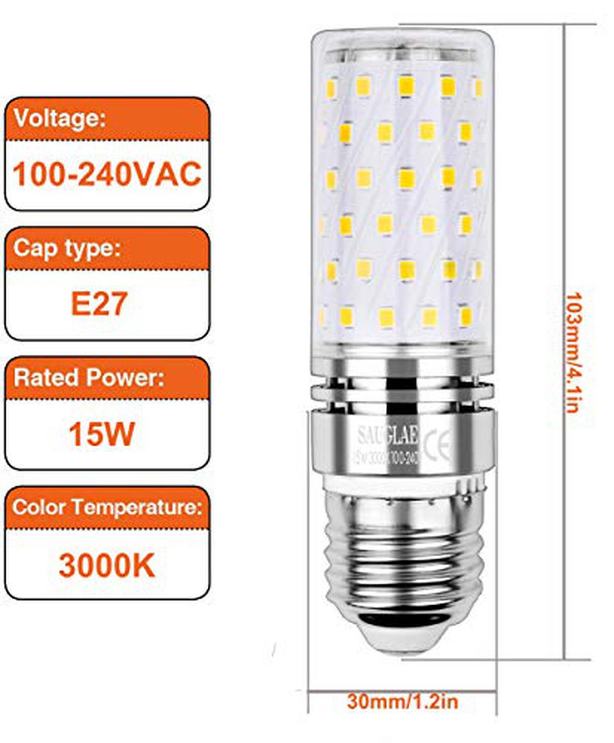 SAUGLAE H-4P15W-E27Corn-WW-58 LED E27 15W 1700lm