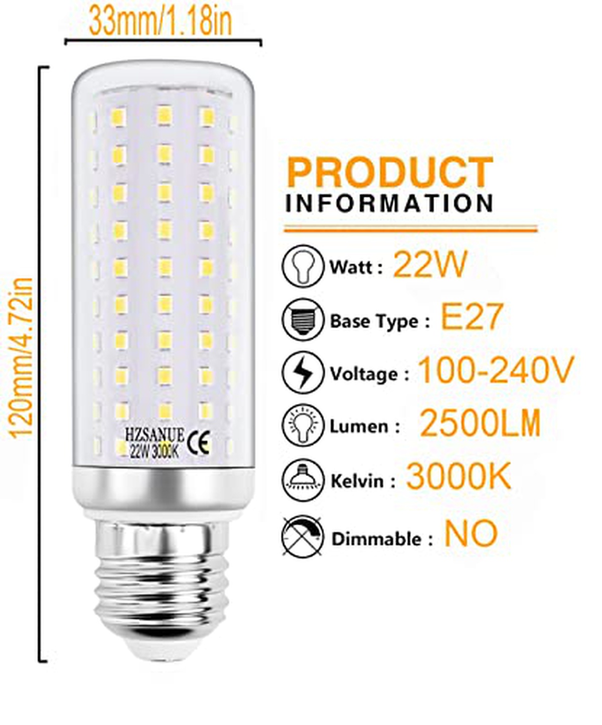HZSANUE 3P22W-E27WW LED E27 22W 2500lm