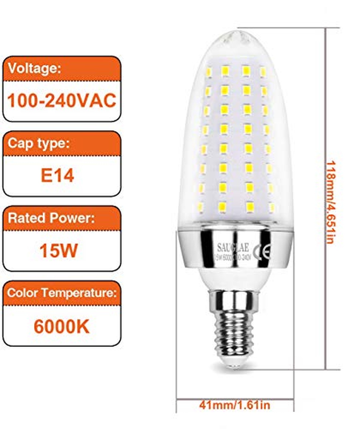 SAUGLAE S-DJP15W-E14-DW-3P-073 LED E14 15W 1700lm