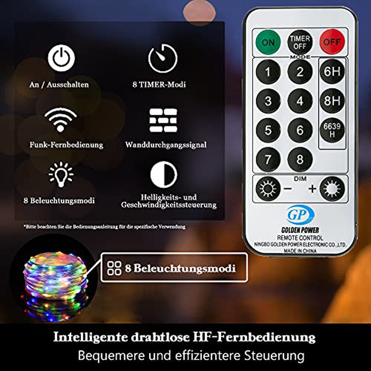 Leuchtende Kette mit 220 LEDs, 25 m/8 Modalitäten, aus PVC, wasserundurchlässig, mit Telekommunikation und intelligentem Druck, für interne und externe Zwecke, für Feiertage, Hochzeiten, Feiertage