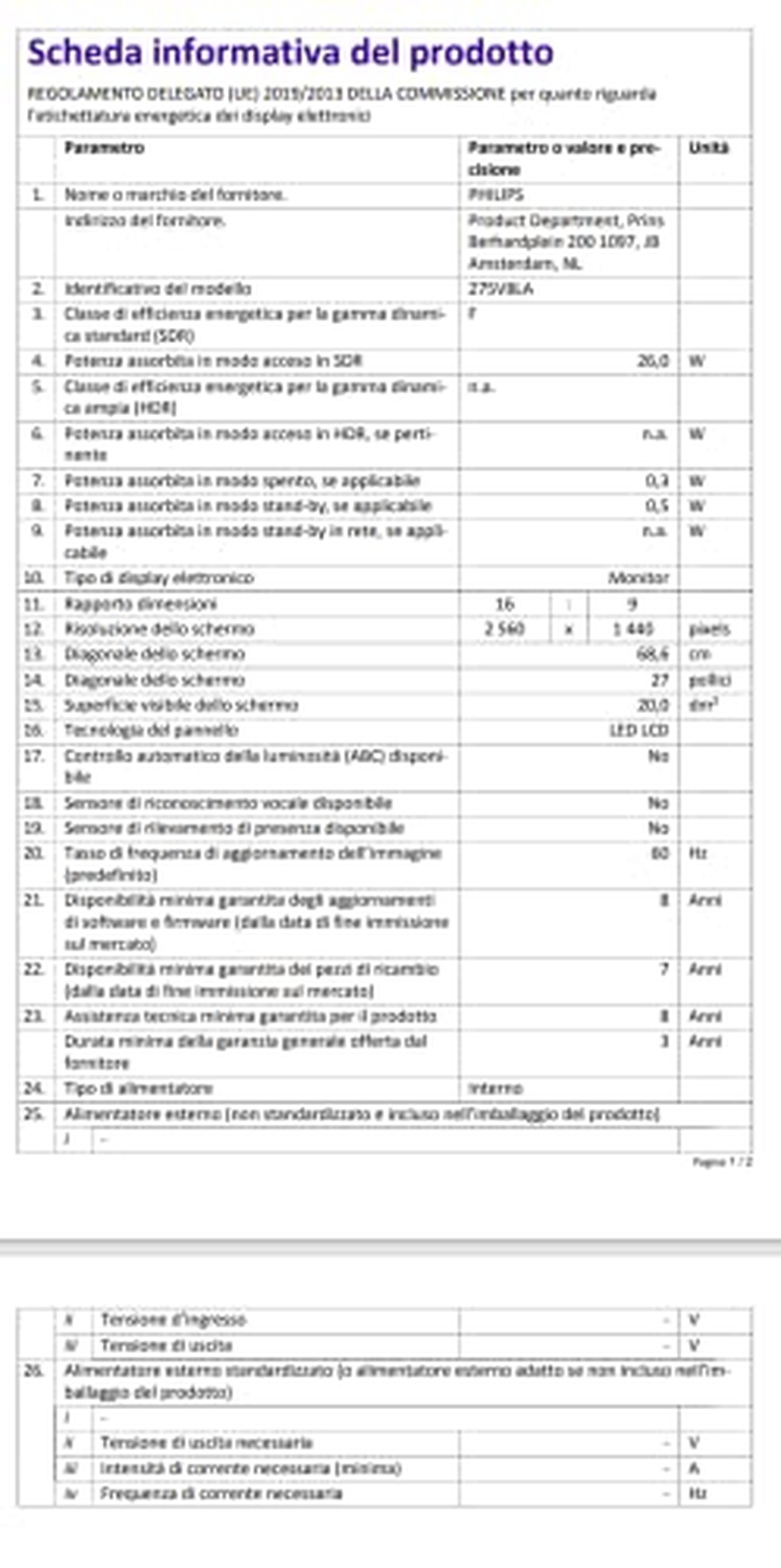 PHILIPS 275V8LA