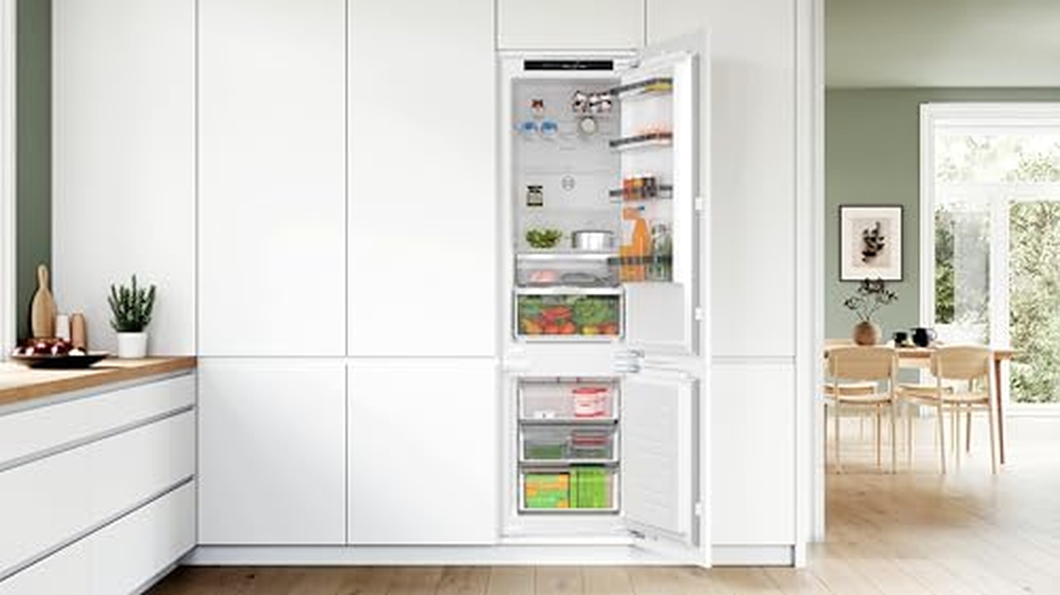 Der Bosch KIN96VFD0 Kühlschrank verfügt über ein elegantes Edelstahldesign mit fortschrittlicher Kühltechnologie. Mit einem geräumigen Innenraum und verstellbaren Ablagen bietet dieser Kühlschrank zahlreiche Aufbewahrungsmöglichkeiten für all Ihre Lebensmittel und Getränke. Die energieeffiziente LED-Beleuchtung erhellt den Innenraum, während Sie über das praktische Touch-Bedienfeld die Einstellungen ganz einfach anpassen können. Halten Sie Ihre Lebensmittel frisch und ordentlich mit diesem erstklassigen Bosch-Kühlschrank.