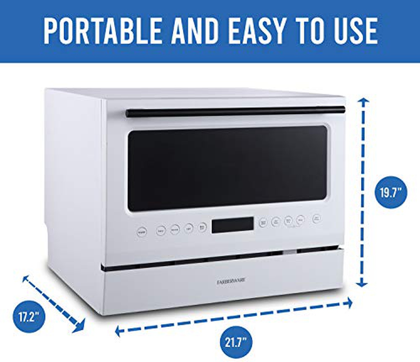 Farberware FCD06ASWWHC Countertop Dishwasher, 6 Piece, Glass Door White