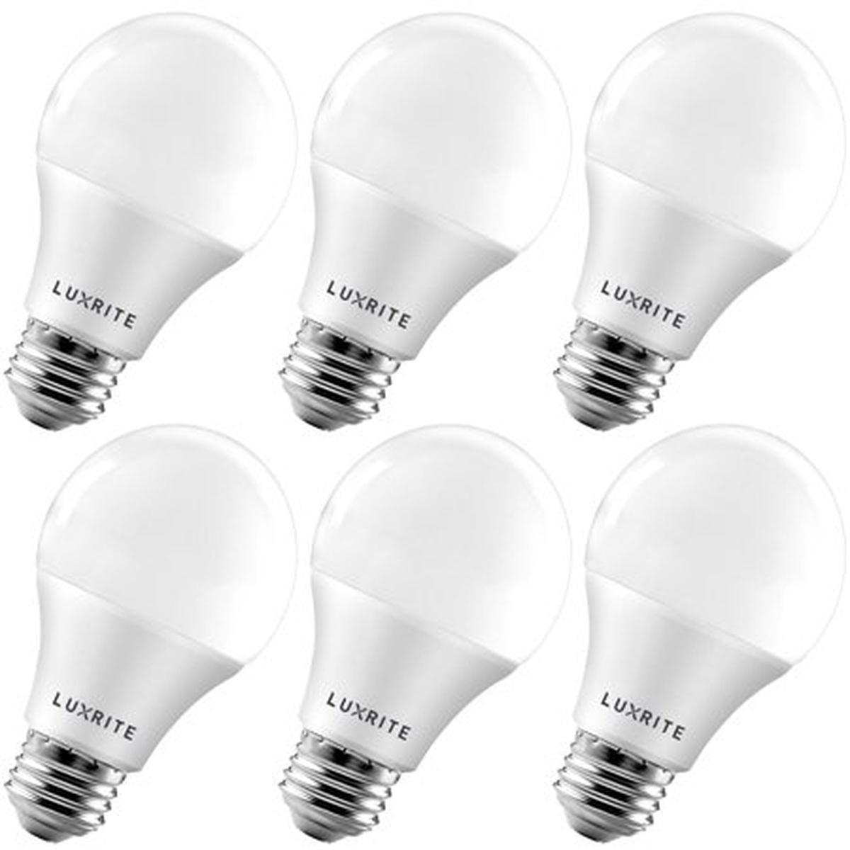 Luxrite A19 LED Light Bulb 60W Equivalent, 5000K Daylight White Dimmable, 800 Lumens, Standard LED Bulb 9W, E26 Base, Energy Star, Enclosed Fixture Rated, Perfect for Lamps and Home Lighting (6 Pack)