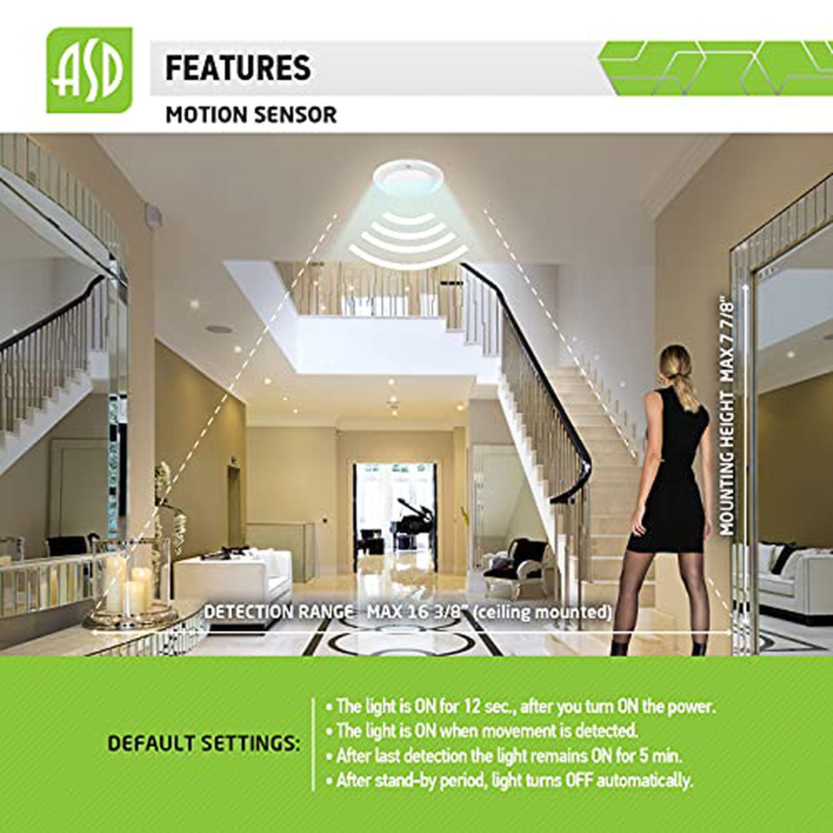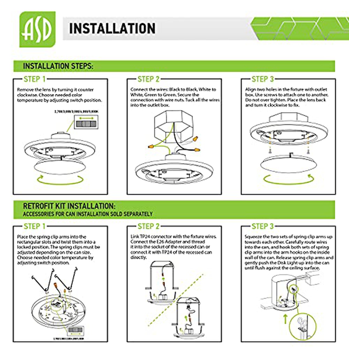 ASD (1 Pack) 6 Inch LED Disk Light with Motion Sensor, CCT Adjustable (2700-5000K) White Low Profile Recessed Flush Mount Ceiling Lighting Fixture, 15=100W Eq. 1100 Lm, Wet Location, ETL&Energy Star