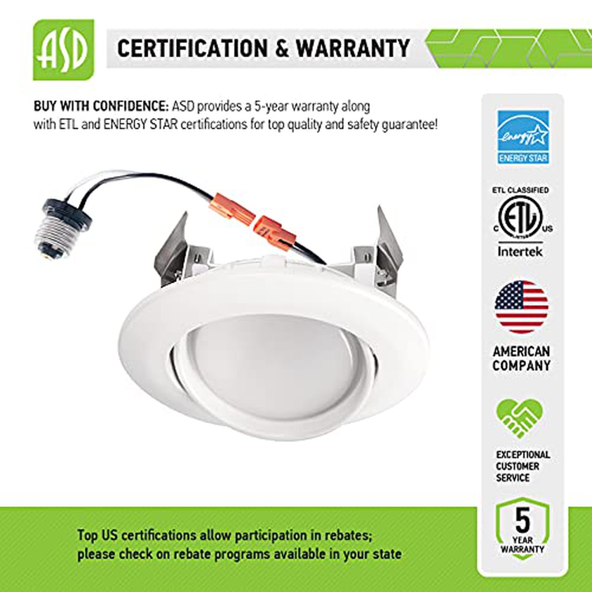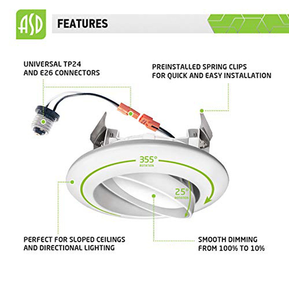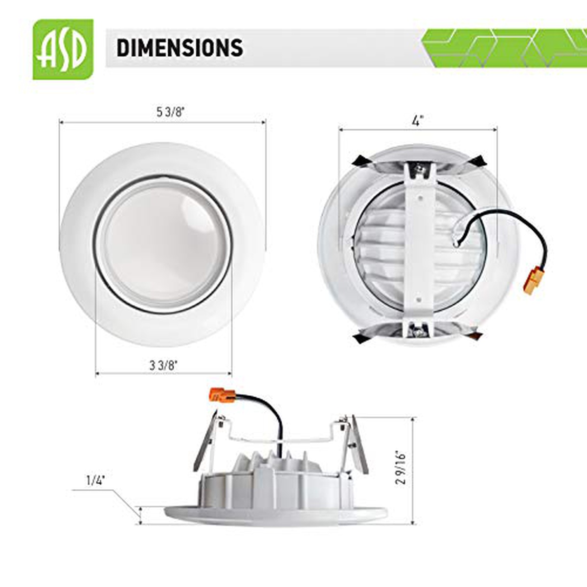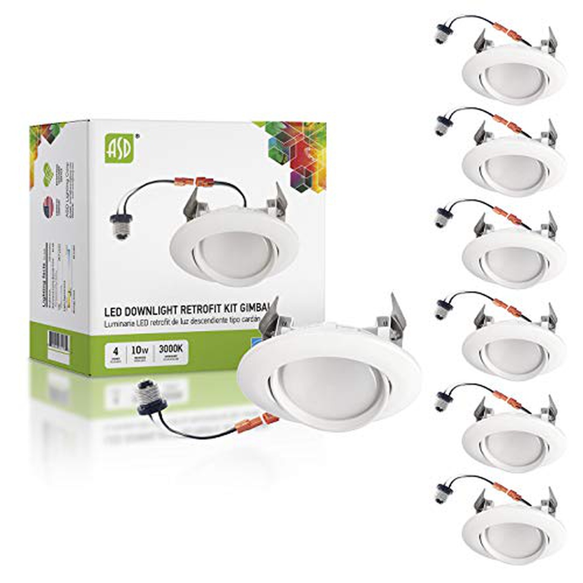 ASD 4 Inch LED Gimbal Retrofit LED Recessed Lighting Directional, Dimmable 10W (40W Replaces) Recessed Lights Swivel, CRI 90, Can Installation, 720Lm, 3000K, Energy Star, ETL, 6 Pack
