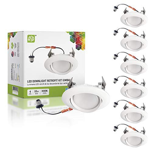 ASD 4 Inch LED Gimbal Retrofit LED Recessed Lighting Directional, Dimmable 10W (40W Replaces) Recessed Lights Swivel, CRI 90, Can Installation, 720Lm, 3000K, Energy Star, ETL, 6 Pack
