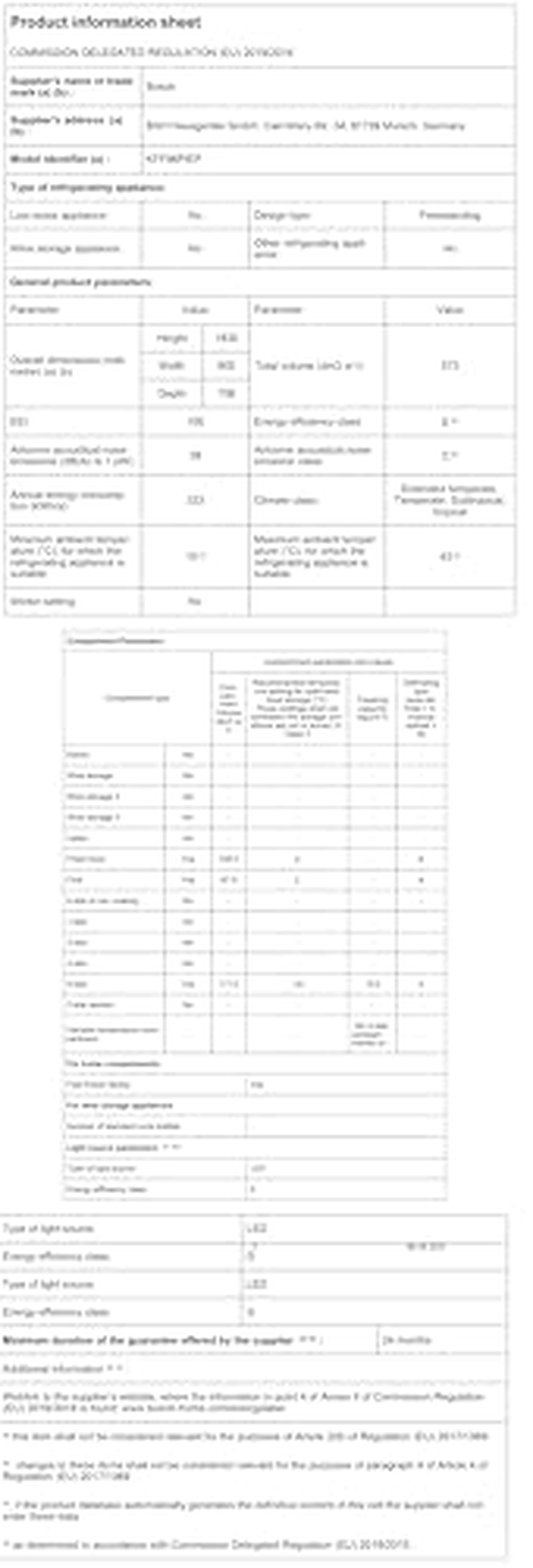 Total volume of the refrigiration compartments (litres)