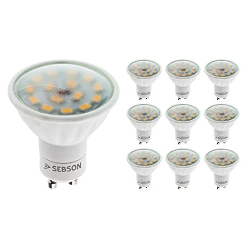 The SEBSON GU10_15SMD5630 LED GU10 5W 380lm light bulb is a versatile and efficient lighting solution. With its innovative design, this bulb provides exceptional brightness and clarity to any space. The 15 SMD5630 LEDs emit a powerful light output of 380 lumens, ensuring optimal visibility in every corner of the room. Featuring a compact size and easy installation process, this LED bulb seamlessly integrates into various fixtures and settings. Its GU10 base ensures a secure fit while allowing for effortless replacement when needed. With a power consumption of just 5 watts, it not only reduces energy consumption but also helps lower electricity bills. This light bulb is designed to offer longevity and durability with its high-quality materials. The superior build quality ensures that it can withstand daily use without compromising on performance or lifespan. Additionally, the advanced heat dissipation technology prevents overheating issues, extending the overall lifespan of the bulb. Ideal for both residential and commercial applications, this SEBSON LED GU10 light bulb delivers reliable illumination in living rooms, kitchens, offices, shops, or any other area where bright lighting is required. Whether you need focused task lighting or general ambient illumination, this product offers versatility to suit your specific needs. In summary, the SEBSON GU10_15SMD5630 LED GU10 5W 380lm light bulb combines exceptional brightness with energy efficiency and durability to provide an outstanding lighting experience in any setting. Upgrade your space with this top-notch lighting solution today!