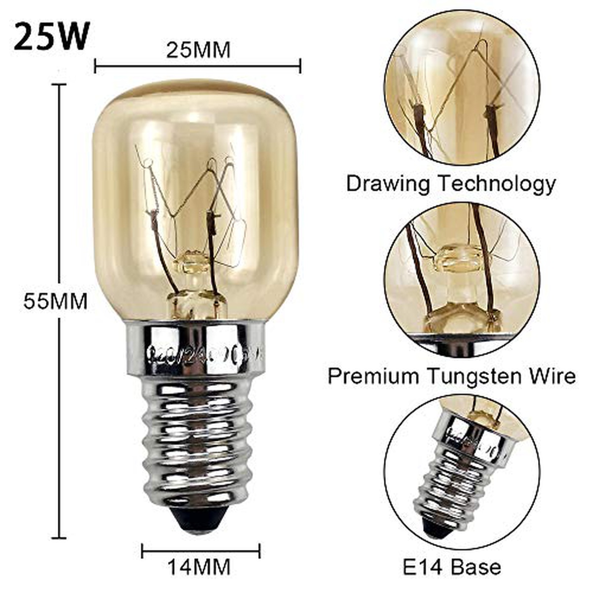 Brand: DR. FISCHER Type: Light Bulbs Model: T25 25W OVEN OTHER E14 25W 172lm Description: The DR. FISCHER T25 25W OVEN OTHER E14 light bulb is an essential addition to any oven or appliance requiring a reliable and efficient lighting solution. With its compact size and E14 base, it fits seamlessly into compatible sockets without any hassle. Featuring a power output of 25 watts, this light bulb provides ample brightness to illuminate the interior of your oven or appliance effectively. It emits a warm and welcoming glow with its luminous flux of 172 lumens, creating an inviting atmosphere while cooking or baking. Constructed with high-quality materials, the DR. FISCHER T25 light bulb ensures durability and long-lasting performance even in high-temperature environments. It can withstand extreme heat without compromising its functionality, making it suitable for use in ovens and other heated appliances. With its easy installation process, you can quickly replace your old or burnt-out bulbs with the DR. FISCHER T25 model. Simply twist it into place using the E14 base and enjoy instant illumination that enhances visibility during cooking tasks. Whether you're preparing delicious meals or simply checking on your food's progress, the DR. FISCHER T25 25W OVEN OTHER E14 light bulb provides reliable lighting that helps you achieve optimal results every time.
