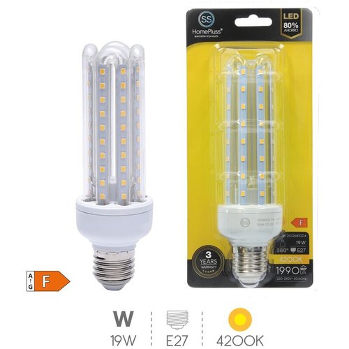 The Light Bulbs HOMEPLUSS 200681004 LED E27 19W 1950lm is a remarkable lighting solution that combines efficient technology with exceptional brightness. With its E27 base, it fits seamlessly into standard light fixtures, making it an ideal choice for both residential and commercial spaces. This bulb boasts an impressive power output of 19 watts, ensuring ample illumination to brighten up any room or area. Its high lumen rating of 1950lm provides a radiant glow, creating a welcoming ambiance wherever it is installed. Crafted with advanced LED technology, this light bulb guarantees energy efficiency without compromising on performance. It consumes minimal electricity compared to traditional bulbs, resulting in lower energy bills and reduced environmental impact. The Light Bulbs HOMEPLUSS 200681004 LED E27 offers longevity as well. With a long lifespan, it will serve you faithfully for years to come before needing replacement. This not only saves money but also eliminates the hassle of frequent bulb changes. In addition to its practicality and durability, this light bulb exudes style and elegance. Its sleek design effortlessly complements any interior decor while providing optimal lighting conditions for various activities such as reading, working, or simply relaxing. Whether you need bright task lighting or cozy ambient illumination, the Light Bulbs HOMEPLUSS 200681004 LED E27 19W 1950lm is your go-to solution for achieving the perfect atmosphere in any space. Trust in its superior quality and efficiency to enhance your everyday lighting experience significantly.