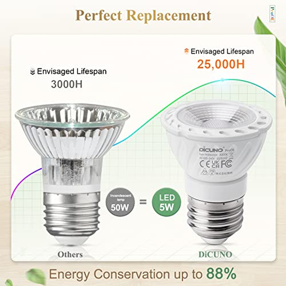 The Light Bulbs DiCUNO WV-MR16-E27-5W-MTL-FS-WW LED E27 5W 328lm is an exceptional lighting solution that combines efficiency, versatility, and style. With its sleek design and compact form factor, this light bulb effortlessly fits into any standard E27 socket. Emitting a warm white glow, it creates a cozy ambiance in any space. Featuring advanced LED technology, this 5-watt light bulb offers impressive brightness with a luminous flux of 328 lumens. It efficiently illuminates your surroundings while consuming minimal energy, making it an eco-friendly choice for those conscious about their carbon footprint. Durability is key with the DiCUNO WV-MR16-E27-5W-MTL-FS-WW LED light bulb. Crafted with high-quality materials and meticulous attention to detail, it ensures long-lasting performance without compromising on functionality or reliability. The metal finishing adds a touch of elegance to its overall aesthetic appeal. This versatile light bulb can be used in various settings such as living rooms, bedrooms, offices, or even commercial spaces. Its wide beam angle ensures uniform illumination across the room while eliminating dark spots or shadows. Moreover, the easy-to-install feature makes replacing your existing bulbs hassle-free – simply twist and lock! Whether you're looking to brighten up your home or enhance the atmosphere in a professional setting, the DiCUNO WV-MR16-E27-5W-MTL-FS-WW LED E27 5W 328lm light bulb is an excellent choice that delivers outstanding performance every time you flip the switch.
