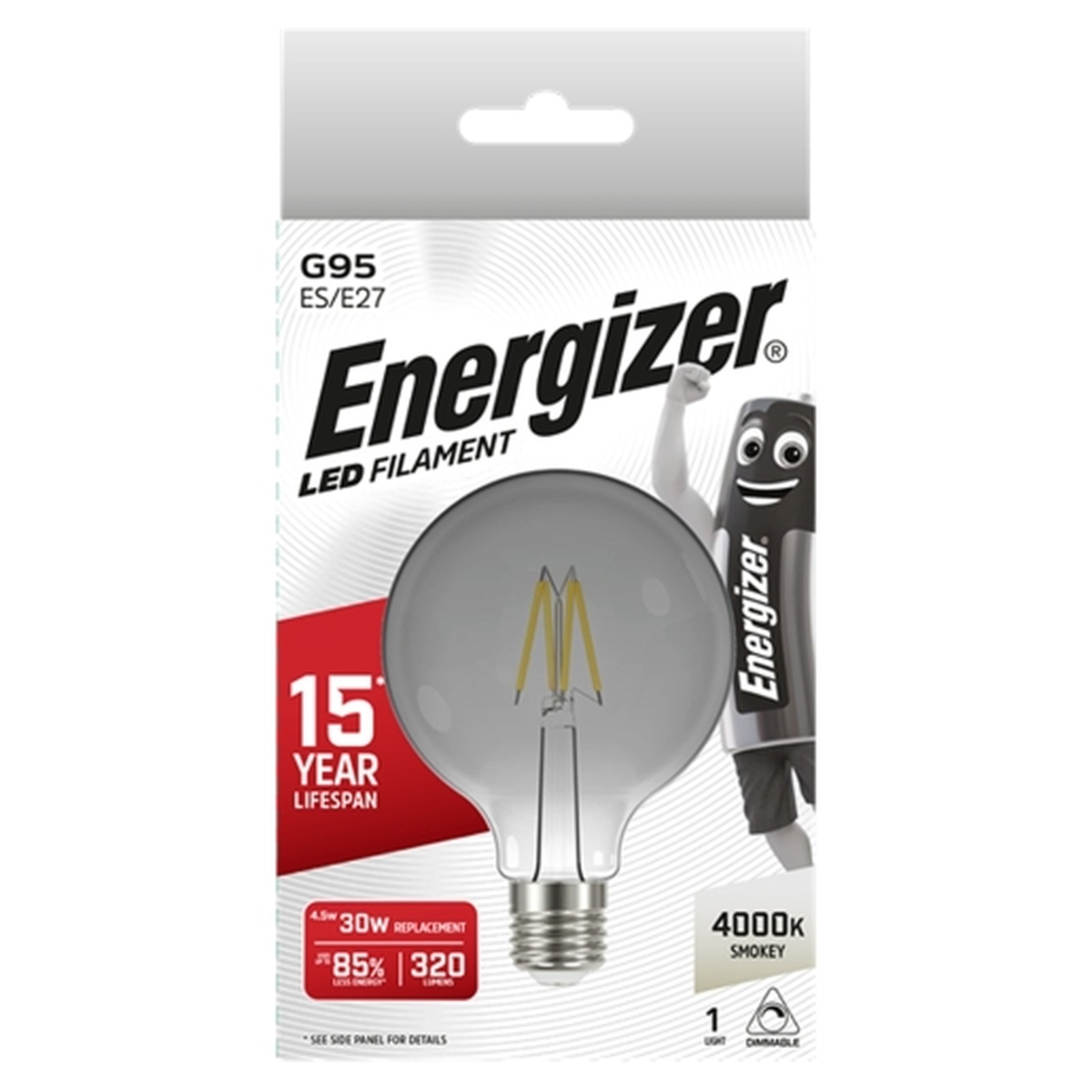 Energizer S15032 Filament Smokey LED G95 E27 Boxed Dimmable