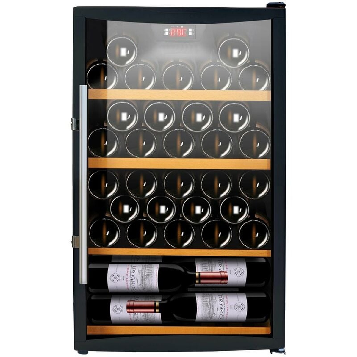 The CAVISS S150GBE4 Wine Storage Refrigerator is a sleek and sophisticated appliance designed to keep your wine collection at the perfect temperature. With a spacious capacity of 150 bottles, this refrigerator features advanced cooling technology to ensure optimal storage conditions for your favorite vintages. The dual-zone temperature control allows you to store both red and white wines at their ideal serving temperatures, while the UV-resistant glass door protects your bottles from harmful light exposure. Complete with adjustable shelves, LED lighting, and a digital display panel, the CAVISS S150GBE4 is the ultimate solution for wine enthusiasts looking to preserve and showcase their collection in style.