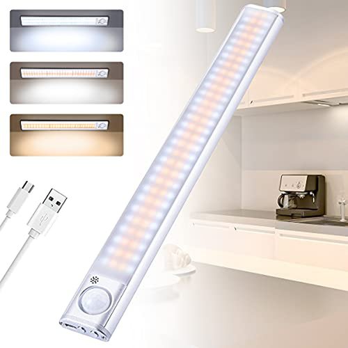 AiQInu Ricaricabile Led Sottopensile, 120 LED Luce Armadio con Sensore Movimento, Dimmerabile Lampada Armadio con Striscia Magnetica Adesiva per Cucina, Scale, Corridoi