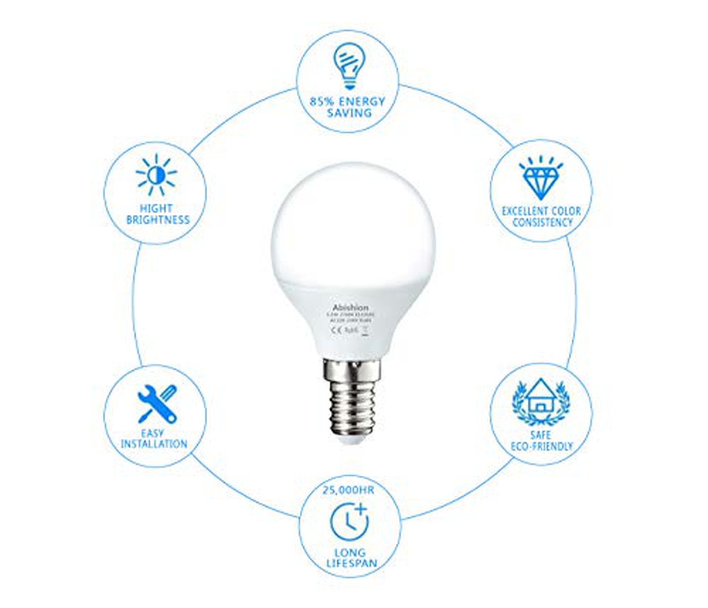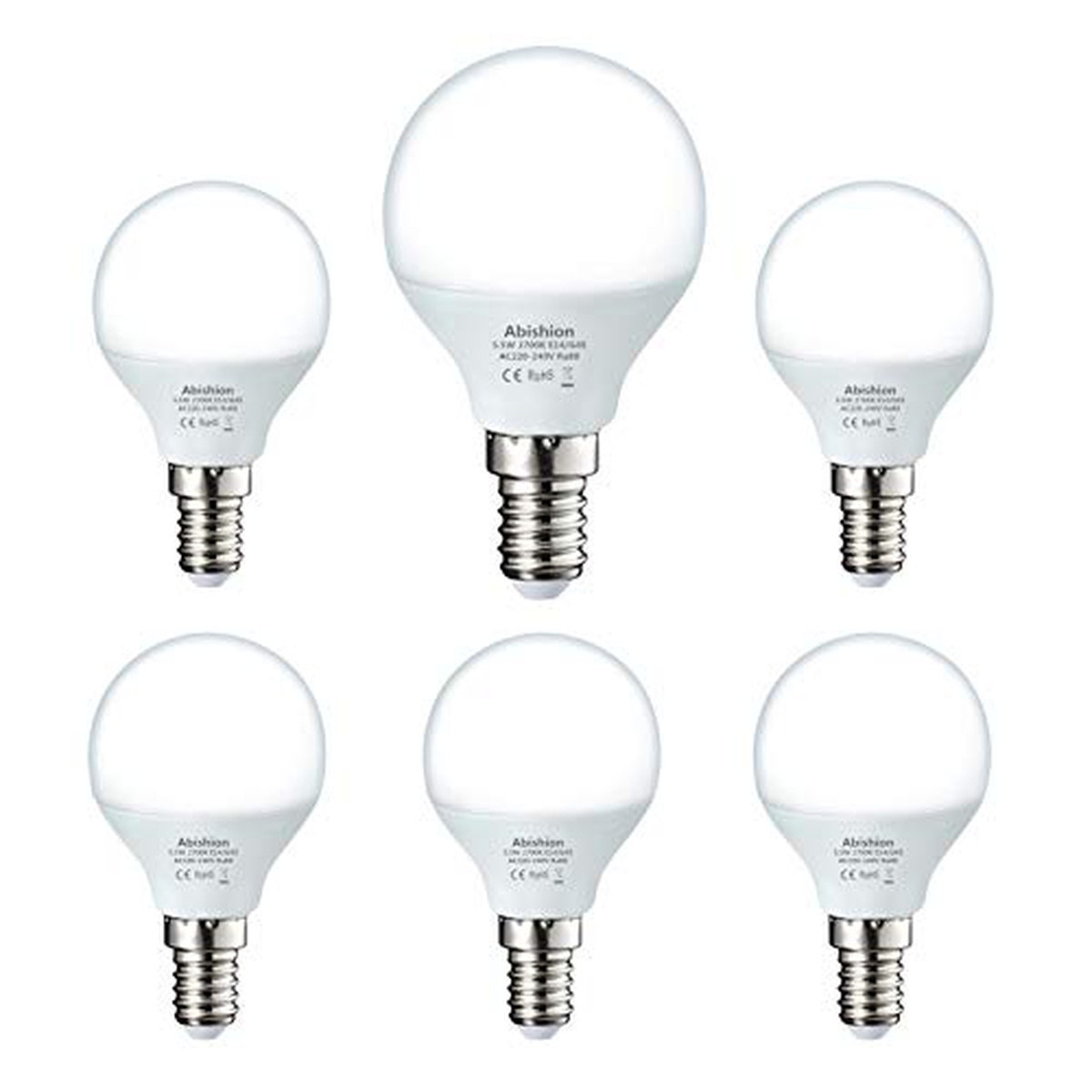 Abishion Lampadina LED E14 a Sfera,5.5W Equivalenti a 40W,Bianco Caldo 2700K,470LM, Lampadine LED G45,Non Dimmerabile,6 pezzi.