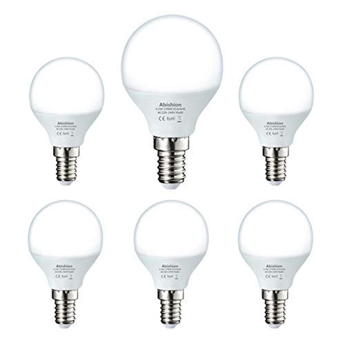 Abishion Lampadina LED E14 a Sfera,5.5W Equivalenti a 40W,Bianco Caldo 2700K,470LM, Lampadine LED G45,Non Dimmerabile,6 pezzi.