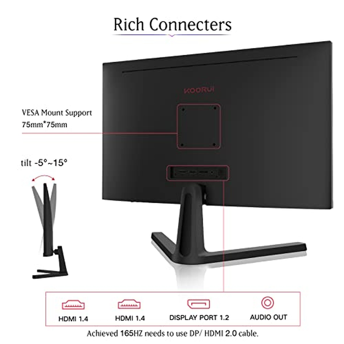 Introducing the KOORUI 24E4 LED_LCD monitor - a stunning display with a sleek and modern design. With a generous diagonal size of 60cm, this monitor boasts an impressive size ratio of 16:9 for crystal-clear visuals that will immerse you in your work or entertainment. Its energy efficiency rating is F, making it an eco-friendly choice for any home or office. The visible area measures at 15.6 inches, providing plenty of space to work on multiple tasks simultaneously without compromising image quality. Equipped with a powerful frequency rate of 165Hz, this monitor delivers smooth and seamless performance every time. The resolution is top-notch too - offering crisp images at 1920 x1080 pixels! Plus, the KOORUI trademark assures high-quality parts and long-lasting durability so you can enjoy your new investment for years to come.