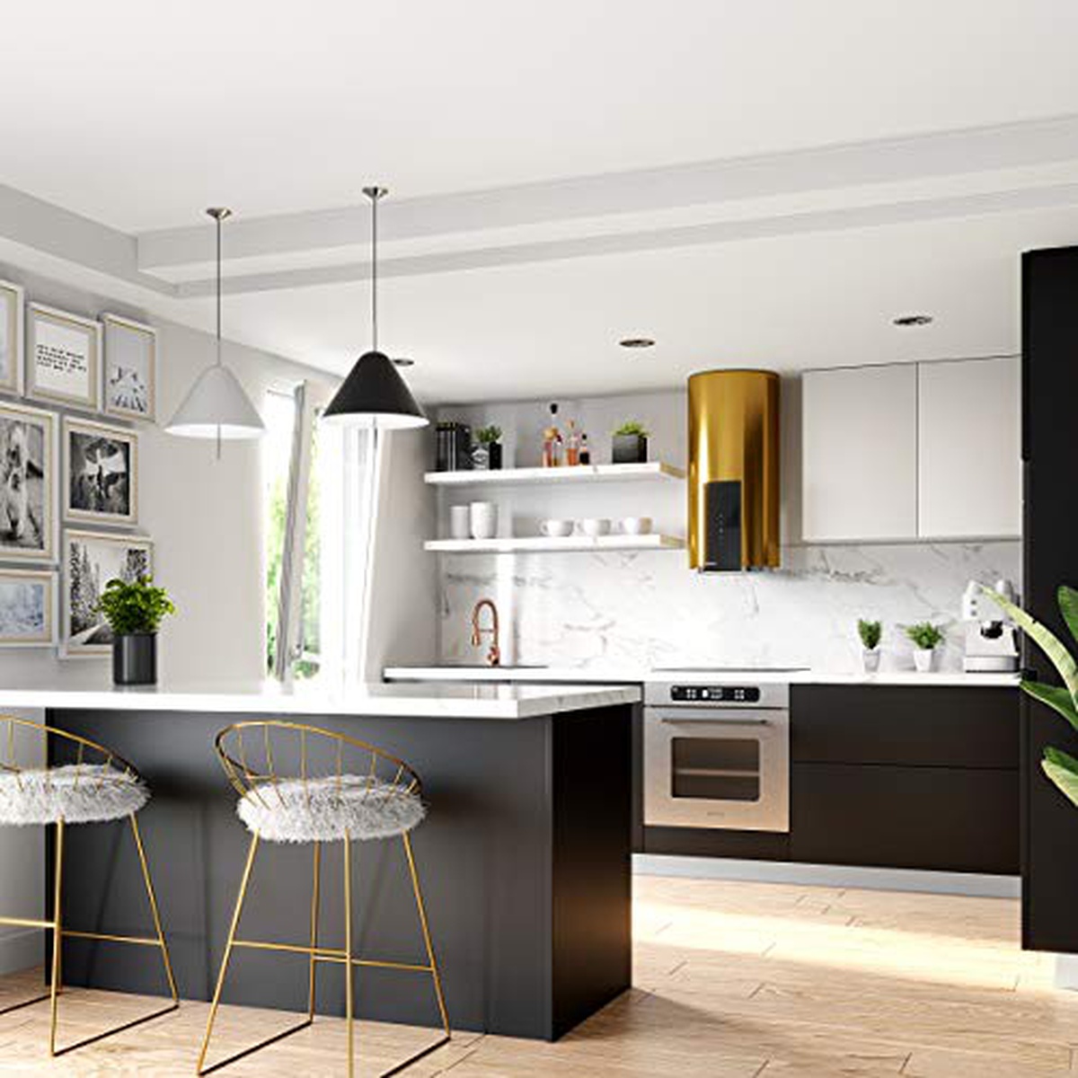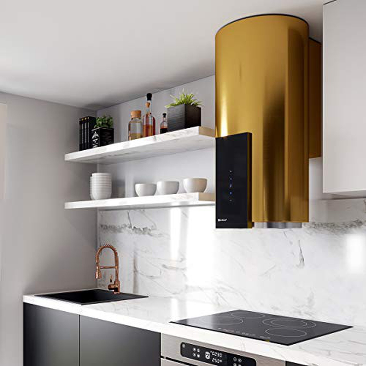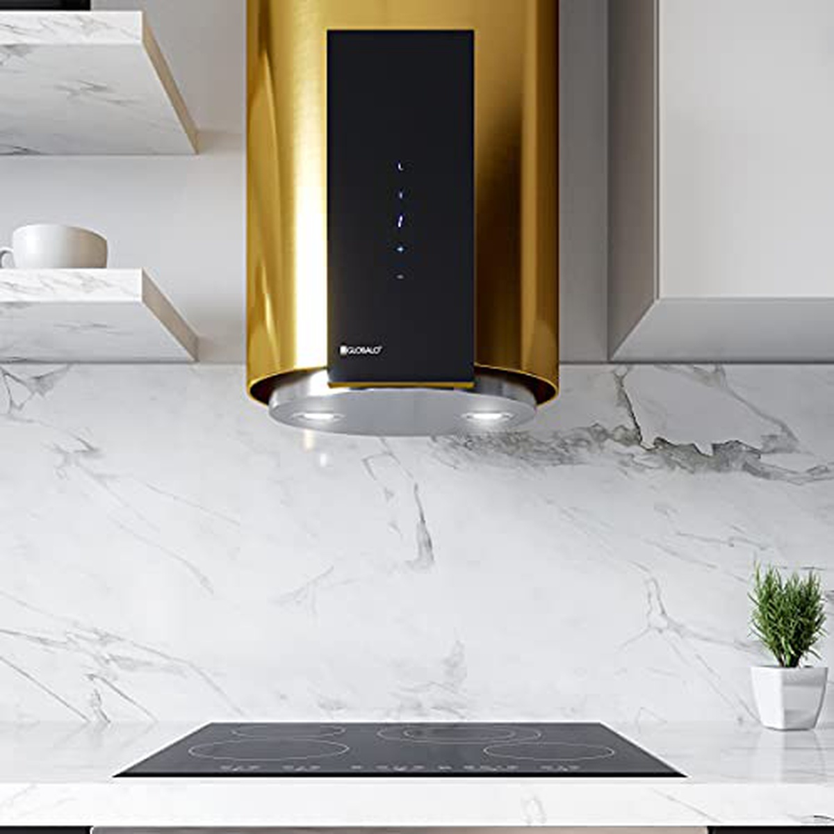 The Rangehoods GLOBALO ROXANO 39.1 GOLD is a luxurious and stylish addition to any kitchen. This top-of-the-line range hood features a sleek gold finish that adds a touch of elegance to your cooking space. With powerful suction capabilities, this range hood effectively removes smoke, grease, and odors from the air while operating quietly in the background. The adjustable fan speeds and LED lighting make it easy to customize your cooking experience, while the durable construction ensures long-lasting performance. Upgrade your kitchen with the Rangehoods GLOBALO ROXANO 39.1 GOLD for a blend of functionality and beauty in one appliance.