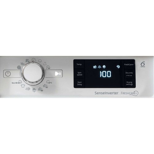 The WHIRLPOOL BI WDWG 961485 UK washer dryer is a high-quality appliance that offers efficient and reliable performance. With a noise level of 70 dB, it operates quietly during its various cycles. The moisture level after drying is maintained at 53%, ensuring your clothes come out perfectly dry. This washer dryer has an energy efficiency rating of D, providing you with cost-effective operation while minimizing environmental impact. It features a power-off mode that consumes only 0.5 watts when not in use, saving energy even when the machine is idle. With dimensions of 60 cm width, 55 cm depth, and 82 cm height, this appliance fits seamlessly into your laundry room or kitchen area. The spin speed can reach up to 1351 rpm for effective water extraction and faster drying times. Its spin class B ensures efficient spinning performance. The WHIRLPOOL BI WDWG 961485 UK offers a rated capacity of 9 kg for washing and a separate capacity