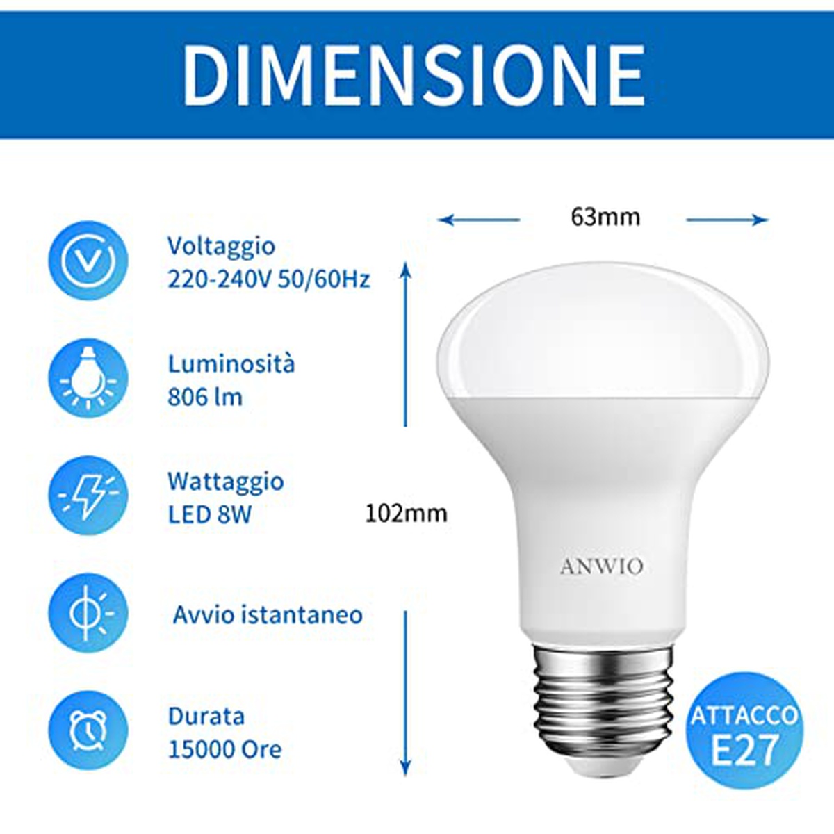 ANWIO AN-R63-8 8W E27 2700K LED E27 8W 806lm