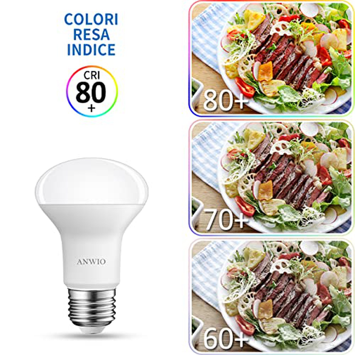 The Light Bulbs ANWIO AN-R63-8 8W E27 2700K LED is a high-quality lighting solution that combines energy efficiency with superior performance. With its E27 base, it can easily fit into standard light fixtures, making it convenient for household use. Featuring a power output of 8 watts, this bulb emits a warm white light at a color temperature of 2700K. This provides a cozy and inviting ambiance to any room or space. Whether you need to brighten up your living room, bedroom, or office, this bulb will deliver optimal illumination without straining your eyes. With an impressive lumen output of 806lm (lumens), this LED bulb ensures ample brightness while consuming minimal electricity. Not only does it save on energy costs, but it also has a long lifespan compared to traditional incandescent bulbs. The Light Bulbs ANWIO AN-R63-8 boasts excellent durability and reliability thanks to its top-notch construction materials and advanced technology. It is built to withstand regular usage and can operate efficiently for extended periods without losing its luminous efficacy. Upgrade your lighting setup with the Light Bulbs ANWIO AN-R63-8 8W E27 2700K LED E27! Its combination of low energy consumption, exceptional brightness, and longevity make it an ideal choice for both residential and commercial applications.