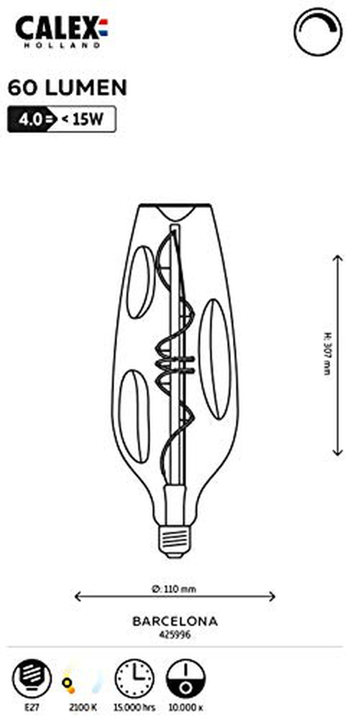 The Calex 425996 light fixture is a versatile and stylish addition to any space. With a luminous flux of W lm, this fixture provides ample lighting for any room or setting. The sleek design and modern finish make it a perfect choice for contemporary interiors. Its adjustable attributes allow for customizable brightness levels, making it ideal for both task lighting and ambient illumination. Illuminate your space with the Calex 425996 and bring a touch of sophistication to your home décor.