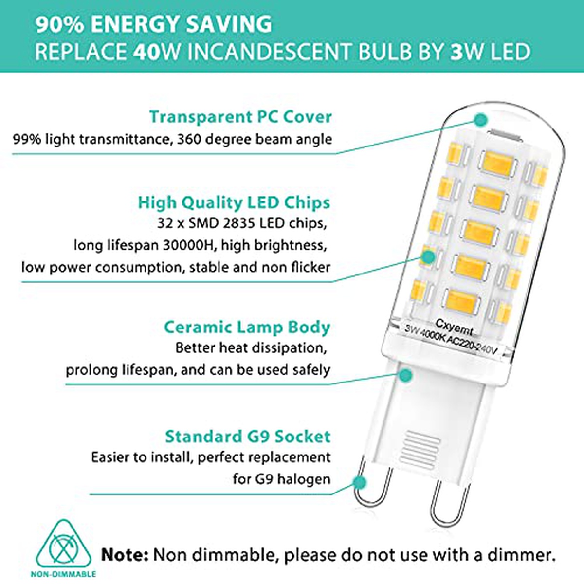 Cxyemt G9-A-32 LED G9 3W 350lm