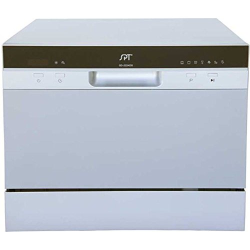 SPT SD-2224DS ENERGY STAR Compact Countertop Dishwasher with Delay Start - Portable Dishwasher with Stainless Steel Interior and 6 Place Settings Rack Silverware Basket for Apartment Office And Home Kitchen, Silver