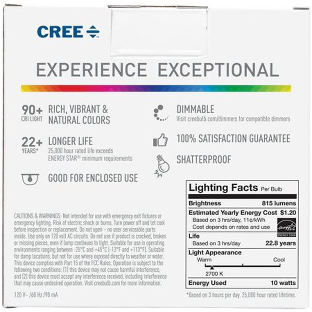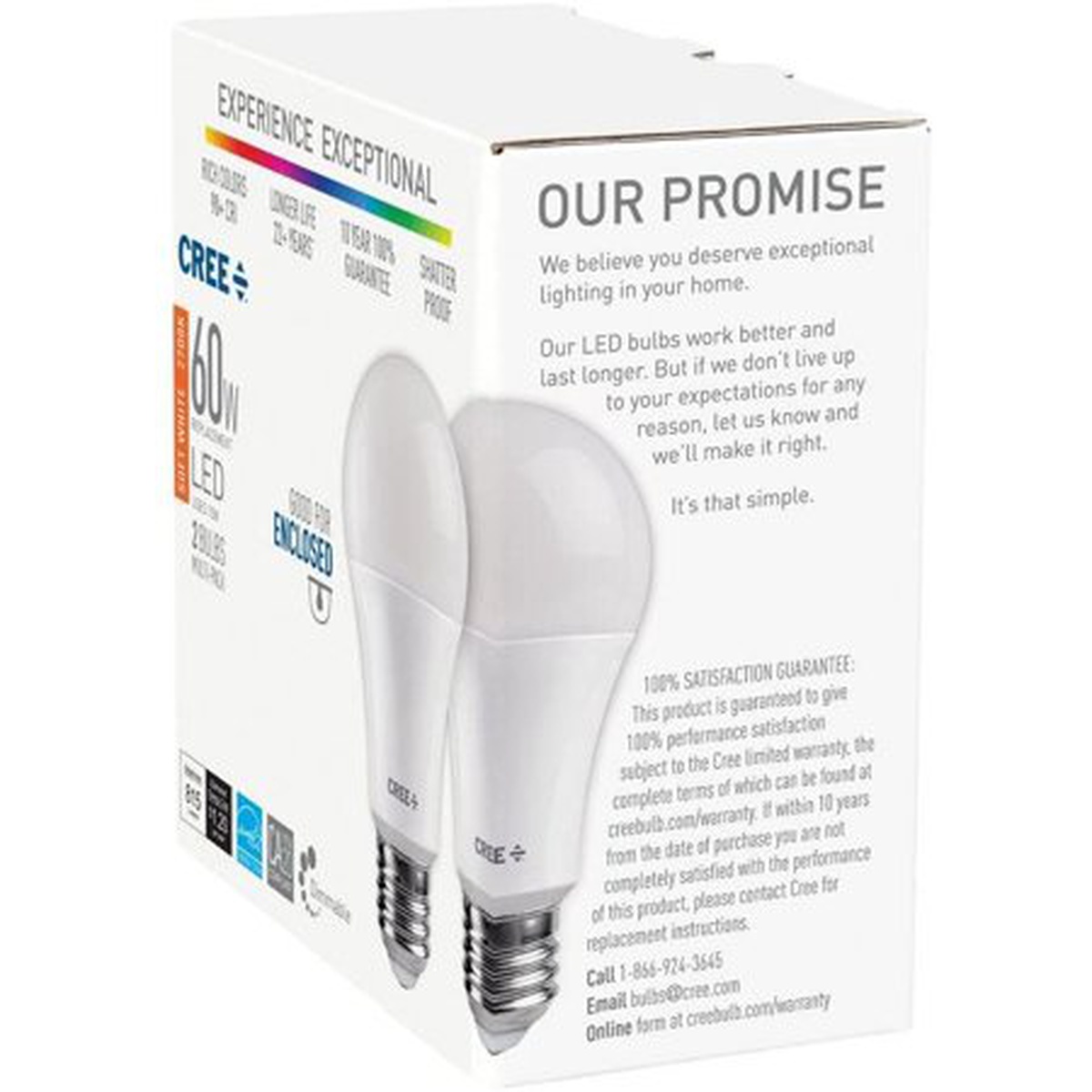 Cree 60W Equivalent Soft White (2700K) A19 Dimmable Exceptional Light Quality LED Light Bulb (2-Pack)