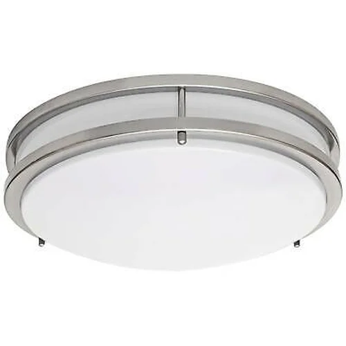 The LED-JR003 Dual Brushed Nickel Ring Series is a High Lumen output Flush Mount fixture with an integrated LED array that gives off an ample amount of long lasting light that cost so little to operate. Uses less energy that fluorescent lights, lasts longer and is maintenance free. Heavy gauge and low profile steel housing and a white diffuser. Available in both Brushed Nickel and Bronze finishes. Perfect for ceiling and wall mounting applications. Available in both Warm (4000K) and Cool (3000) white. Comes complete with mounting hardware. Suitable for damp locations. ETL certified. Energy Star Certified. No bulbs to change. Average life span: 50,000 Hours. LED Array, Inline voltage. 120-Volt A/C.