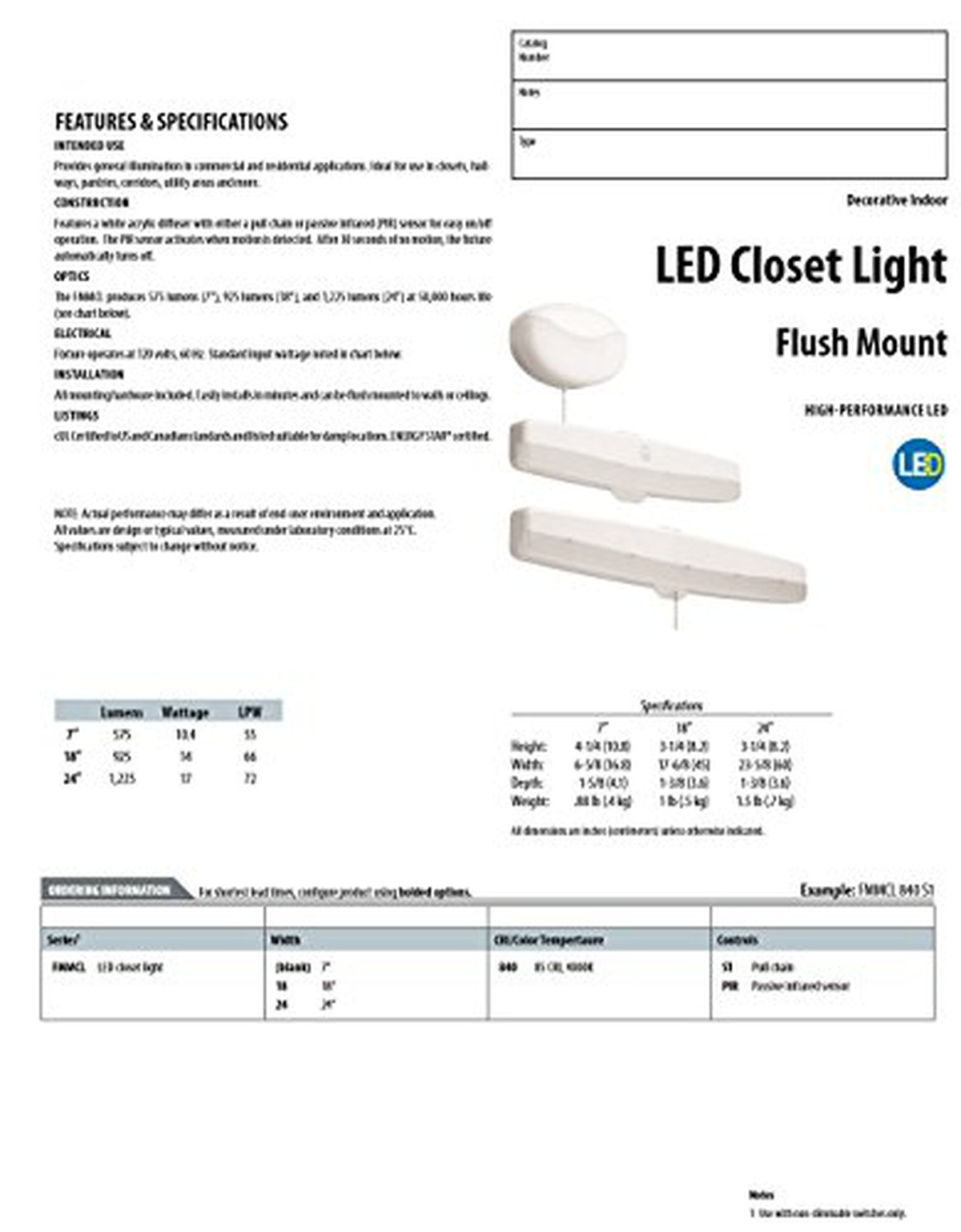 Lithonia Lighting FMMCL 18 840 PIR M4 18-Inch LED Flush Mount Closet Light with Motion Sensor, 925 Lumens, 120 Volts, 14 Watts, Damp Listed, White
