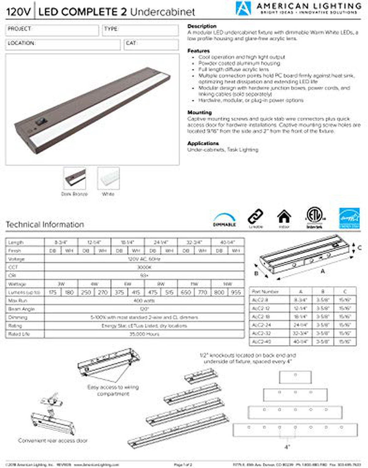 Donde comprar American Lighting ALC2-24-DB LED 8W 475lm