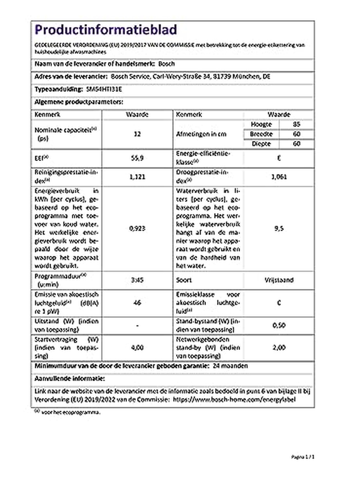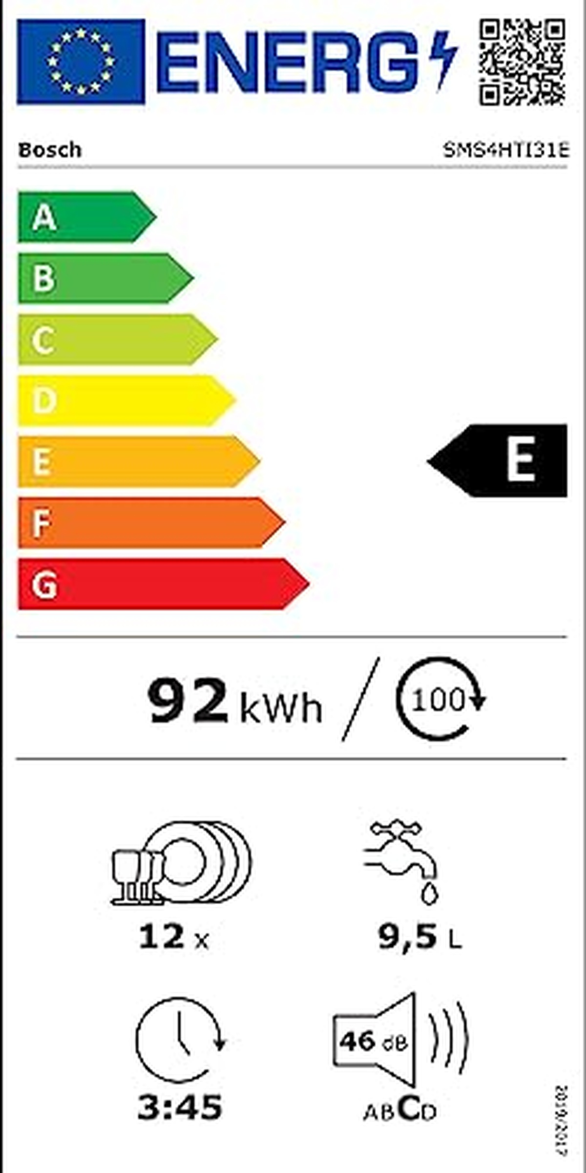 Le Bosch SMS4HTI31E est un lave-vaisselle autonome qui fonctionne à seulement 46 décibels, ce qui en fait un ajout incroyablement silencieux à n'importe quelle maison. Avec un taux de consommation d'eau de 9,5 litres et un taux de consommation d'énergie de 0,923 kWh par cycle, ce lave-vaisselle est à la fois écologique et économique. Il a été évalué avec une classe d'efficacité énergétique E et une classe de bruit C. Sa fonction de démarrage différé permet une plus grande flexibilité dans la planification des lavages, tandis que son mode veille utilise seulement un demi-watt de puissance lorsqu'il n'est pas utilisé. Ce modèle a une capacité nominale allant jusqu'à 12 couverts, ce qui garantit qu'il y a suffisamment de place pour la vaisselle sale après de grands repas de famille ou des dîners entre amis. Les dimensions sont de 60 cm de profondeur sur 60 cm de largeur sur 85 cm de hauteur. Bosch garantit son produit pendant 24 mois à compter de la date de mise sur le marché du 30 septembre 2020. La durée du programme dure environ trois minutes de plus que la plupart des lave-vaisselle.