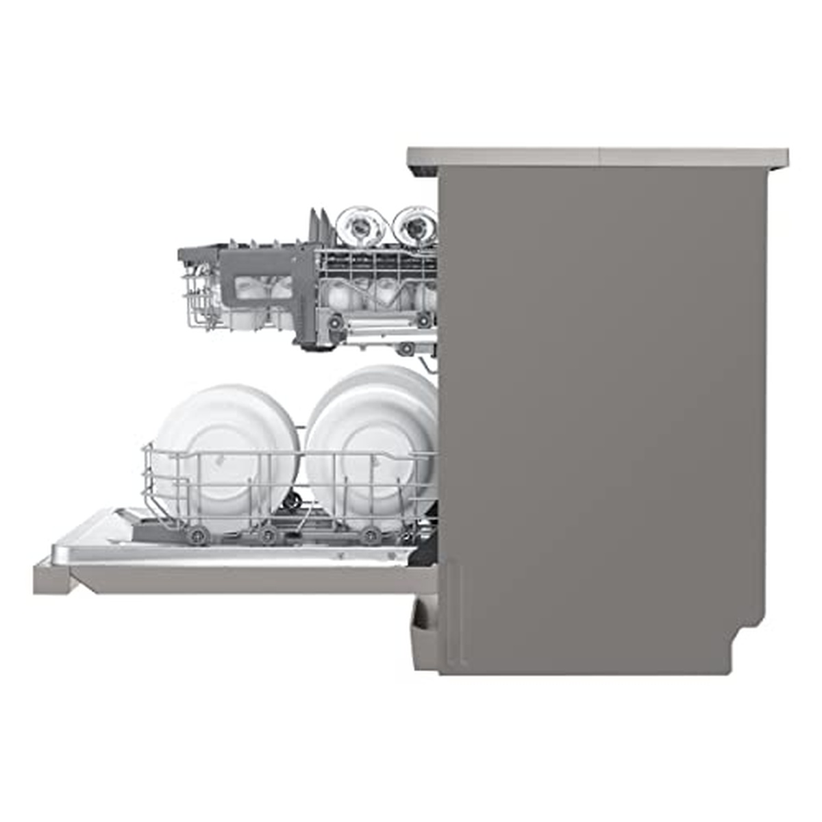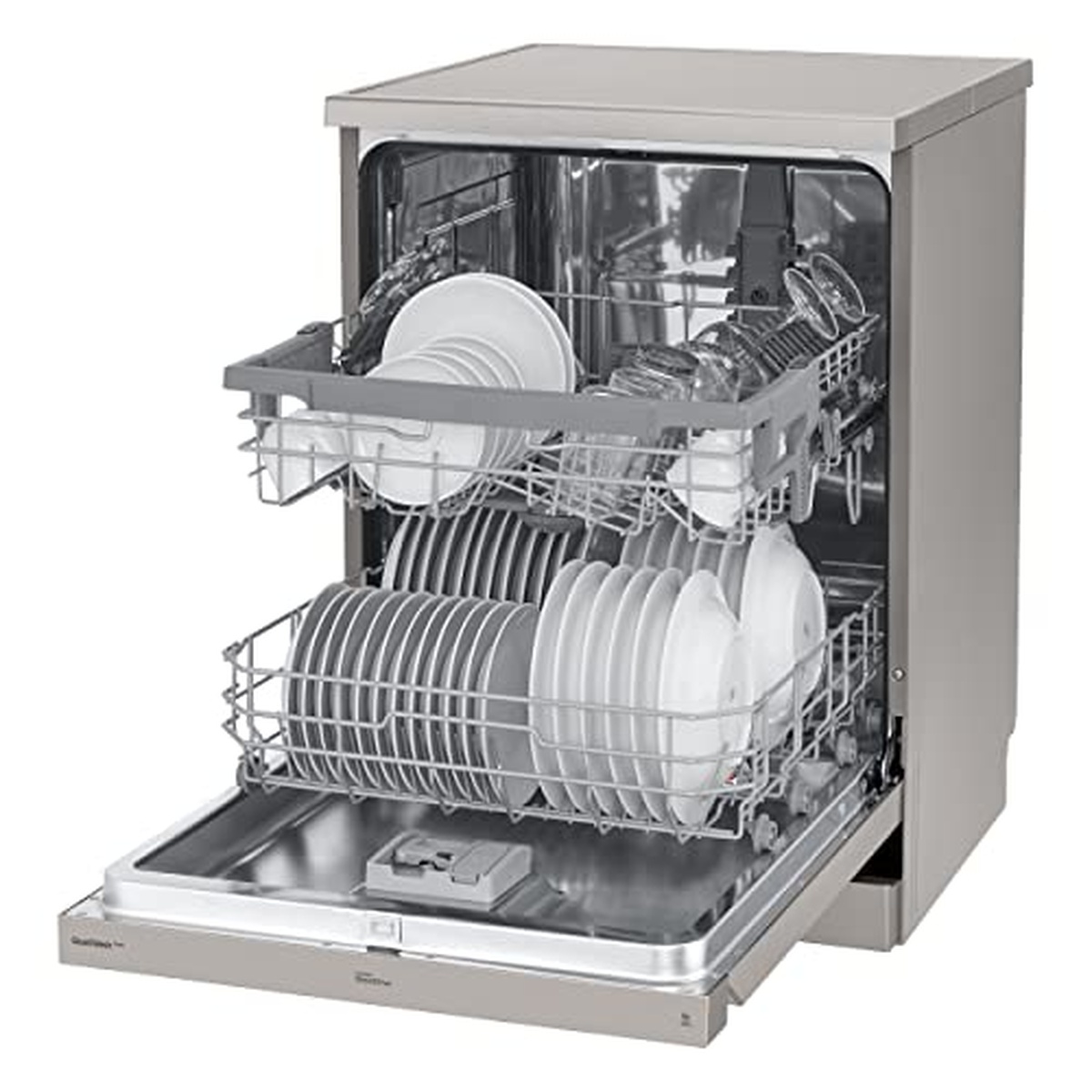 Le lave-vaisselle LG DF222FP est un appareil autonome qui fonctionne avec un niveau sonore de 46 décibels, ce qui le rend comparable au son d'une conversation silencieuse. Avec son excellente cote de consommation d'eau de seulement 9,9 litres par cycle et son taux de consommation d'énergie de seulement 0,951 kWh, ce lave-vaisselle est à la fois efficace et écologique. Il a été classé dans la classe d'efficacité énergétique E et dans la classe de bruit C. Équipé de fonctions d'économie d'énergie telles que le mode hors tension à 0,26 W, le mode veille à 0,26 W et la veille réseau à 1,99 W, il contribue à réduire la consommation globale d'électricité. Avec une capacité nominale pour accueillir jusqu'à quatorze couverts, cette machine est livrée avec des dimensions de profondeur 60 cm x largeur 60 cm x hauteur 85 cm, ce qui la rend idéale pour les ménages de taille moyenne. L'identifiant de modèle LG DF222FP offre des options de démarrage différé pratiques allant de zéro heure à quatre heures tout en offrant un indice de performance de nettoyage de haute qualité.
