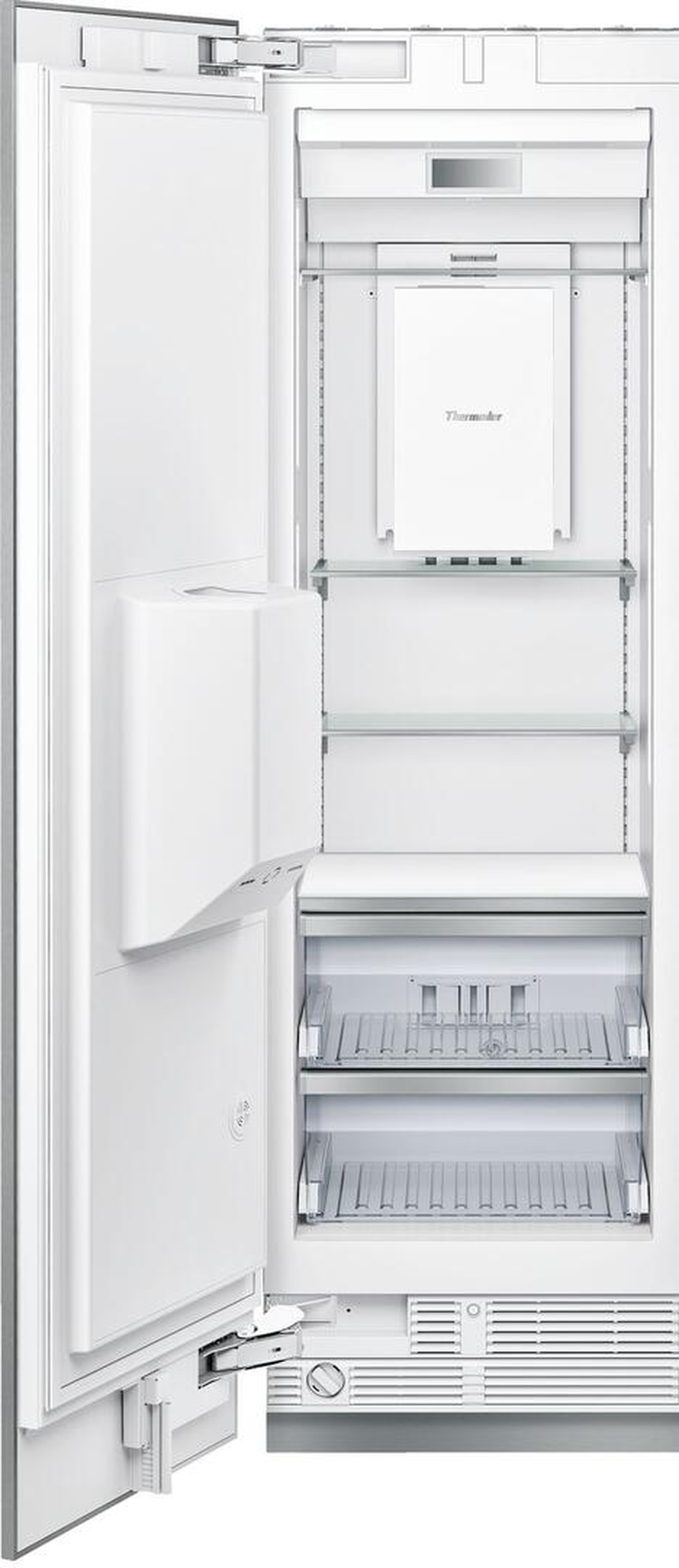 T24ID800 24" la colonne de congélateur encastrée est idéalement conçue pour s'adapter à n'importe quel intérieur de cuisine. Avec la fonction Freedom Hinge, il permet une installation entièrement affleurante et la possibilité de supporter des panneaux personnalisés, tandis que les supports en porte-à-faux offrent la flexibilité d'organiser vos aliments. L'éclairage LED projette une lumière vive sur le contenu afin que vous puissiez facilement trouver ce que vous cherchez.