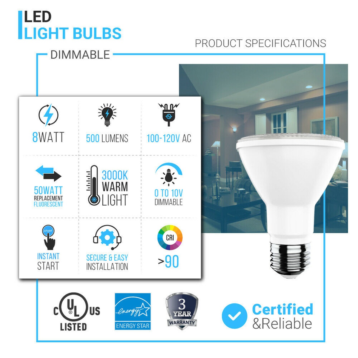 Wen Lighting wen-par20-8w-3k LED E26 (Medium) 15000hours ...