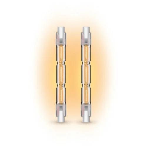 - Classe énergétique : G - Culot : R7S - Couleur de lumière : Blanc chaud - Température de couleur : 2900 K - Consommation : 118W - Equivalence : 137W - Intensité : 2216 lumens - Angle : Supérieur à 240 ° - Durée de vie : 1000 h - Consommation pondérée : 118 kWh / 1000h - Compatible variateur : Oui - Dimensions : Ø0,9 x 8 cm - Tension : 230 V~ / 50Hz - Dimensions : Ø0,9 x 8 cm