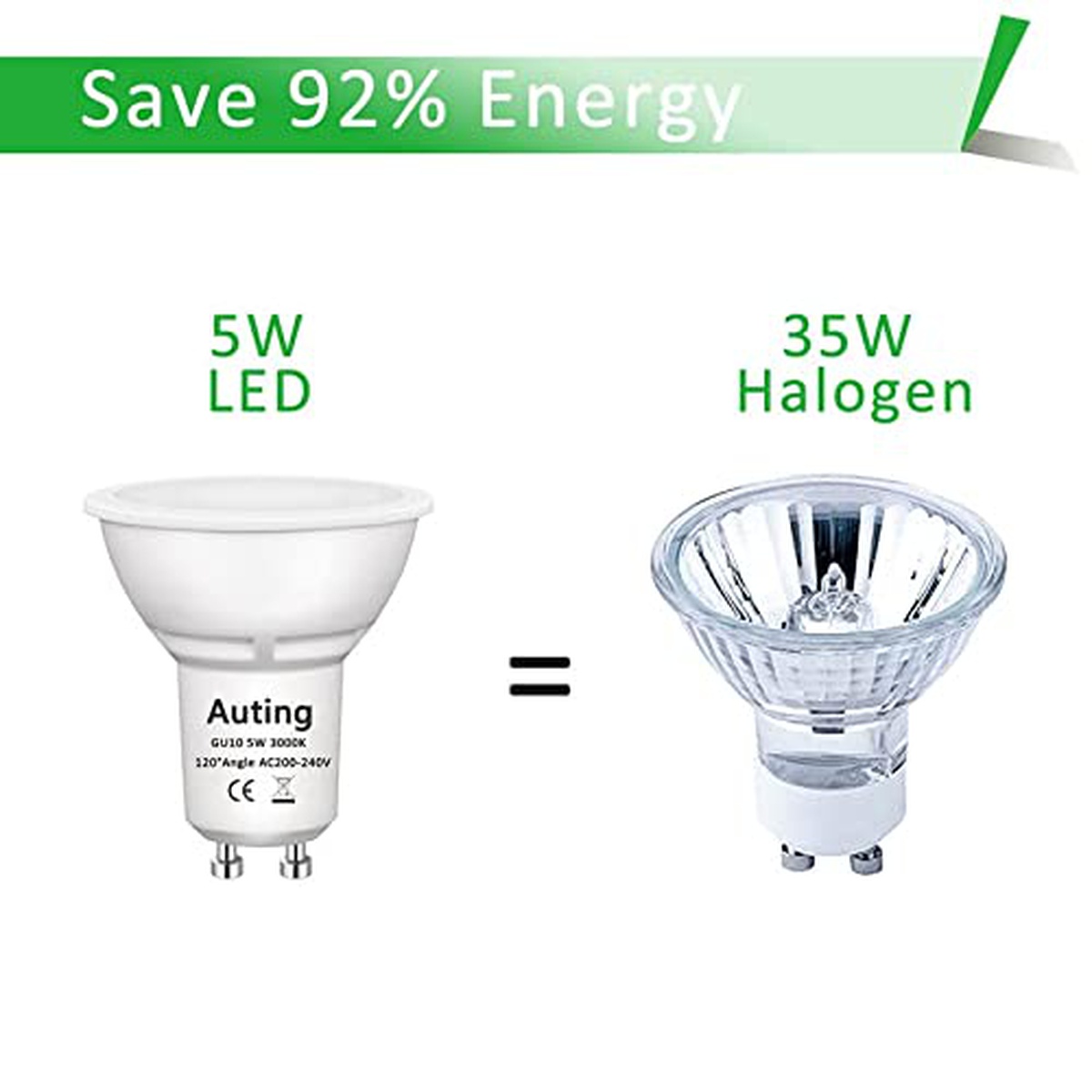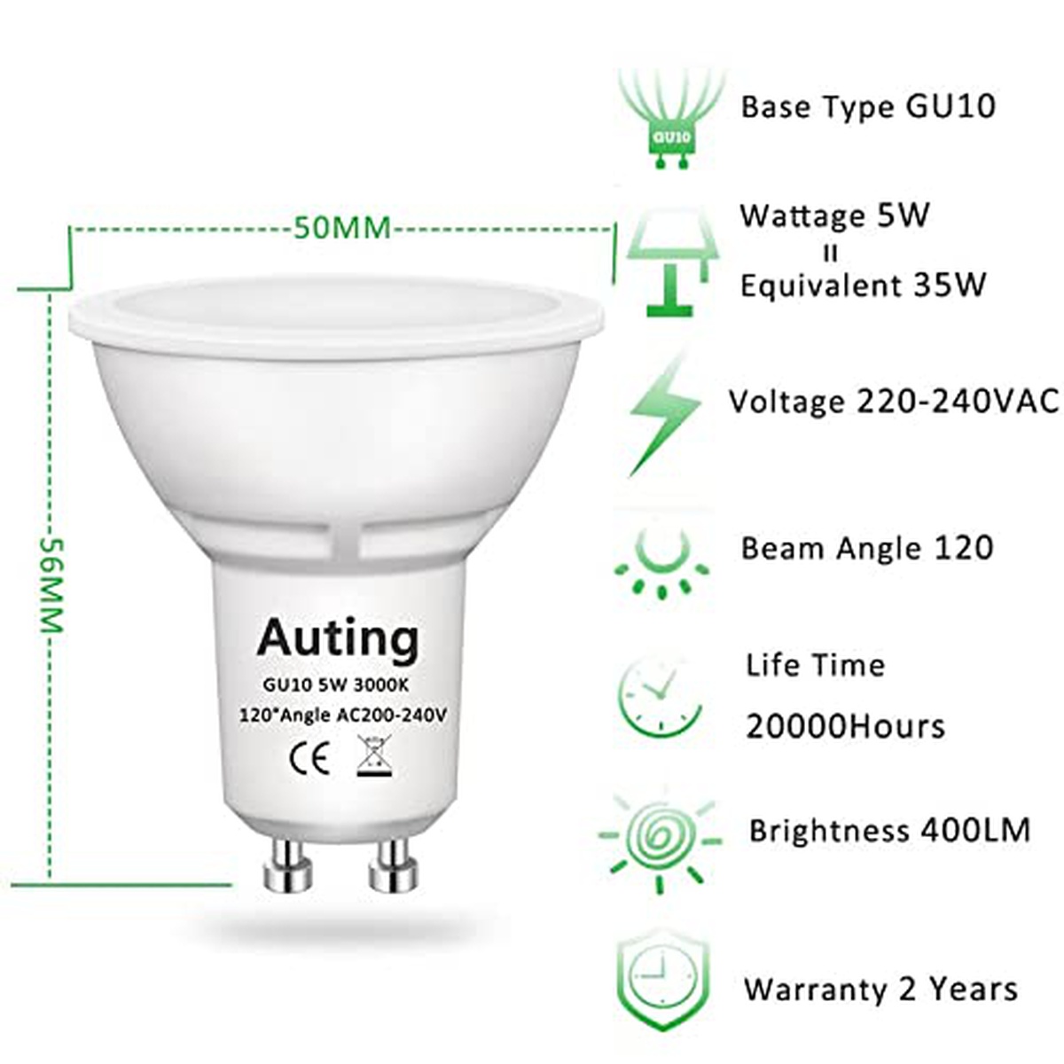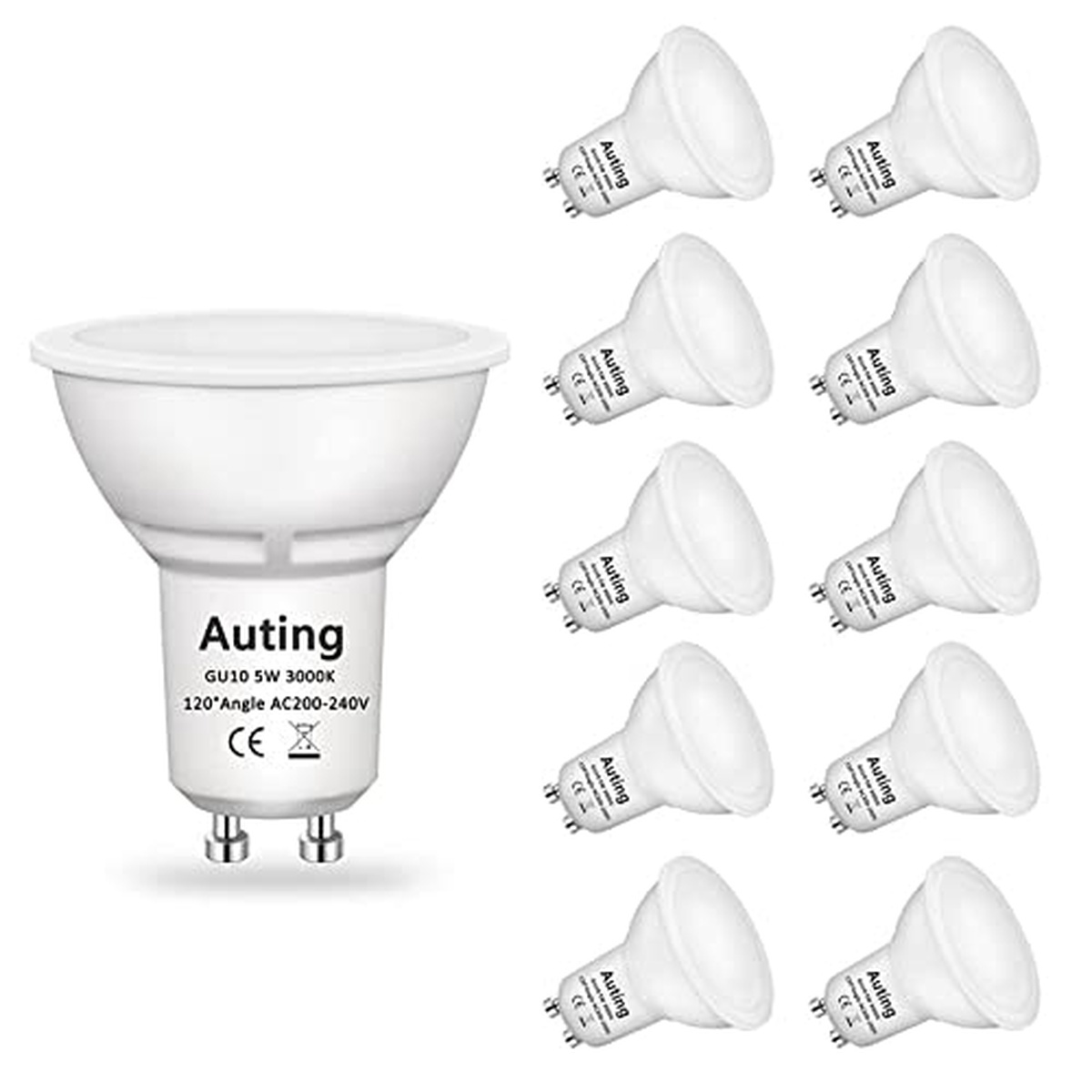 Lampe Led GU10 Blanc Chaud (3000K), Auting 5W 470 Lumen Lampe GU10 Led pour Lampe Alogène 35W, Angle de Faisceau de 120 ° Non dimmable, CRI> 82, 220-240VAC, Confezione de 10