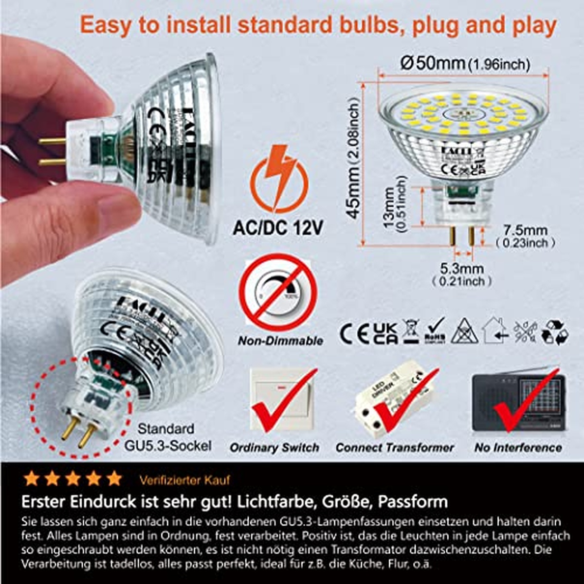 AC/DC 12V; Фtotal 700lm; GU5.3