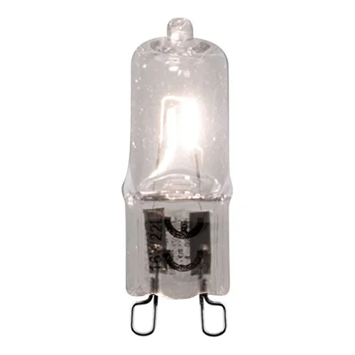 Ampoule halogène G9 .Puissance consommée 28W , puissance restituée 37W, 370 Lm, dimensions 40x15mm