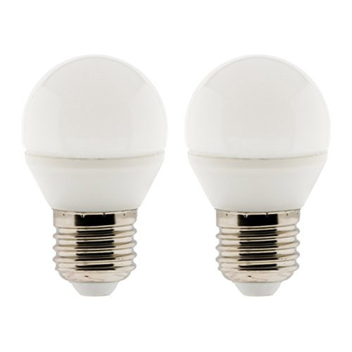 Lot de 2 ampoules LED Sphériques 5W E27 400lm 2700K (blanc chaud) La LED est un semi-conducteur qui émet de la lumière lorsqu'il est soumis à une stimulation électrique: le phénomène est appelé electroluminescence. Leurs flux lumineux élevés offrent de fantastiques qualités d'éclairage ainsi qu'une durée de vie très longue, tout en consommant très peu d'énergie. C'est la solution la plus adaptée à un environnement écoresponsable, comme les nouvelles constructions aux normes BBC ou RT2012. Caractéristiques: Culot: E14 Puissance consommée: 5W Puissance restituée: 35W Intensité lumineuse: 400 Lumens Température de la lumière: Blanc chaud (2700 Kelvin) Durée de vie: 15000 heures grâce à une qualité de fabrication supérieure. Consommation énergétique: classe A++.
