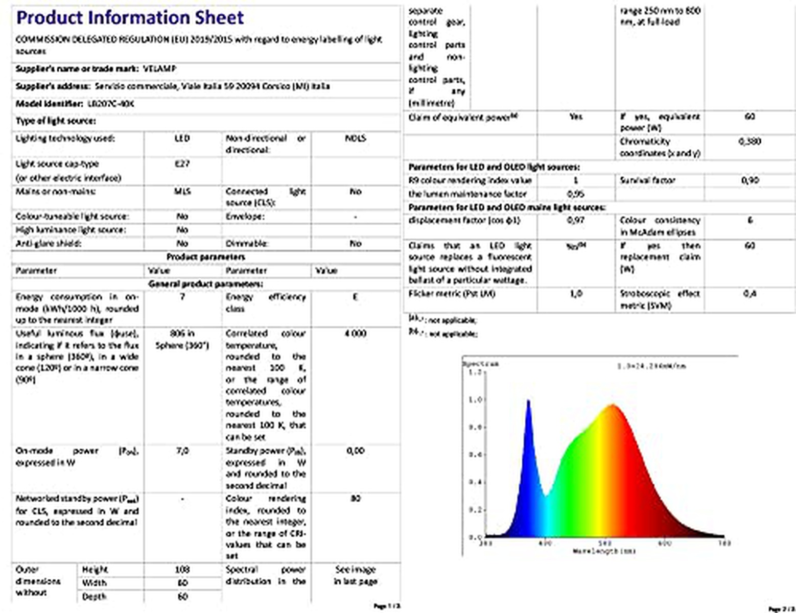 VELAMP LB207C-40K LED E27 7W 806lm