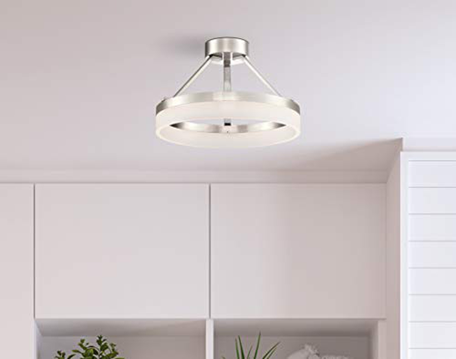 Westinghouse Lighting 65754 – Apparecchiatura semi-rasente da interno a LED Lucy, 60 cm, 40 watt, finitura in nichel spazzolato con paralume acrilico smerigliato