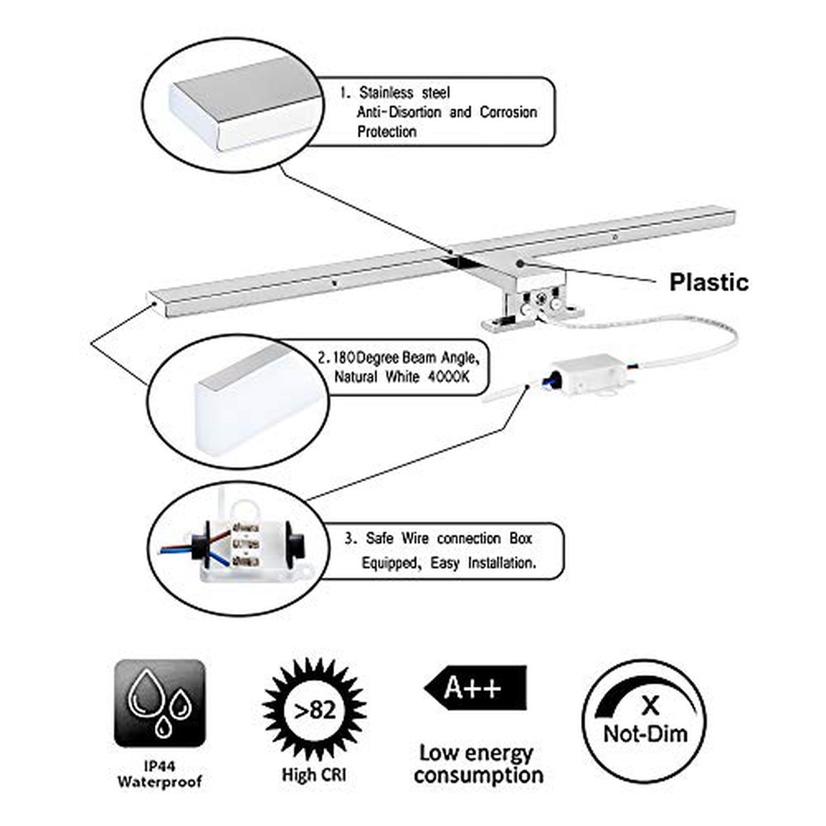 Aourow Lampada Specchio a LED/Lampada Specchio Bagno 10W 820lm 40cm Bianco Neutro 4000K,IP44 230V,Lampada LED Armadio in Acciaio al Nichel-Cromo,Lunghezza Prodotto:400mm