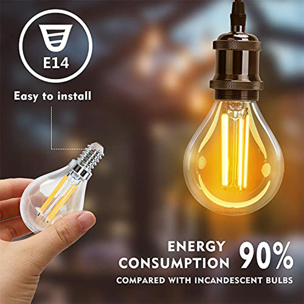 Aigostar Lampadine a Filamento LED E14,Luce Calda 2700K,4W,Equivalenti a 40W,470 Lumen,Angolo di Apertura: 360°,Non Dimmerabile,G45,Confezione da 5 Unità